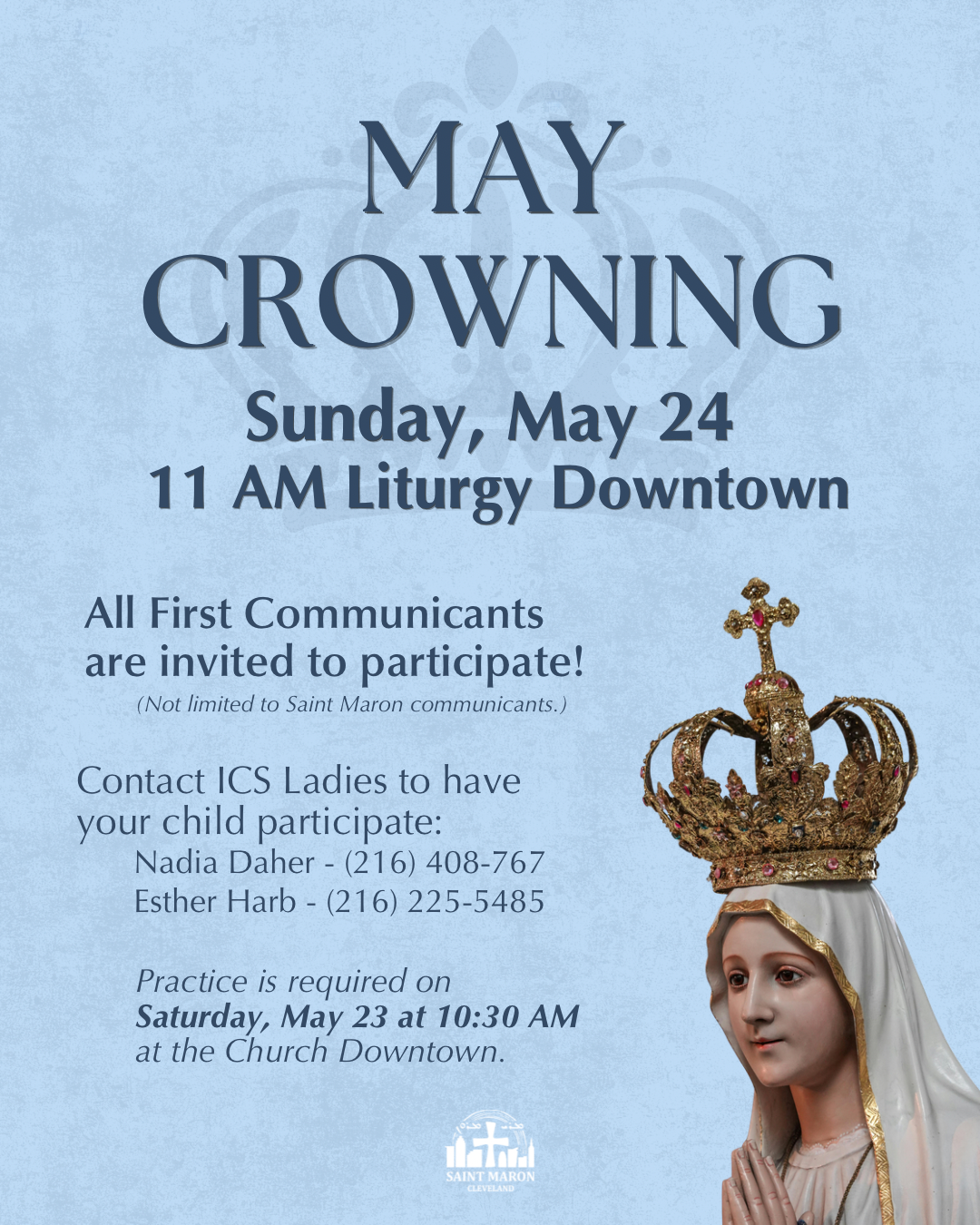 Divine Liturgy: Pentecost Sunday – Downtown Featured May 24 @ 9:30 am St. Maron Church Downtown 1245 Carnegie Ave, Cleveland, Ohio